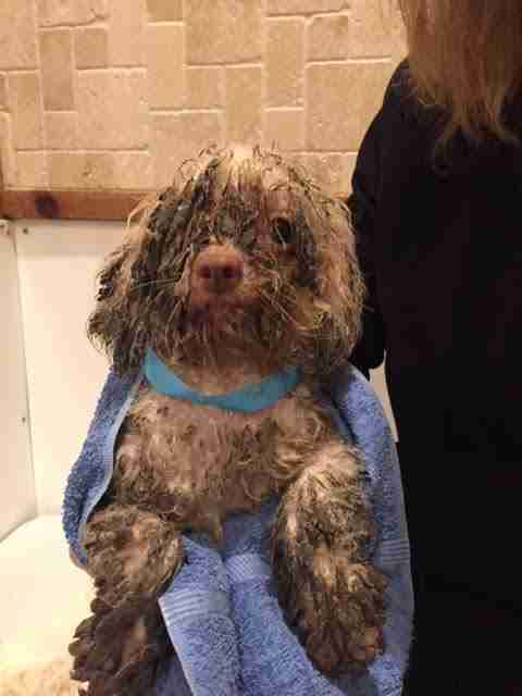 The eight small dogs ACC took in were all terribly matted — but especially the extremely filthy poodle mix, whom rescuers named Beaker.