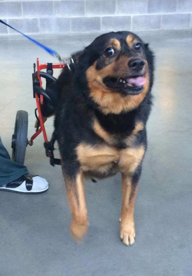 “He is probably one of the most happy-go-lucky dogs in the program,” Cronin said. “He has never met a stranger and gets along well with the dogs in his unit. When coming inside to the unit after his daily outings in the yard with his handlers, he will literally run to the deputy's desk looking for a handout (treat)! His handlers say he is a great dog to work with. They have taught him some pretty unique tricks since he is in a wheelchair. He does just about everything the other dogs do, if not more!”