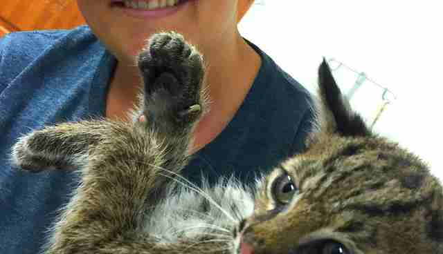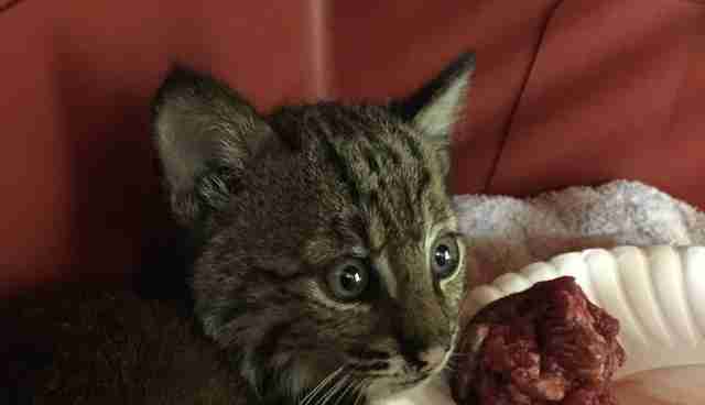 According to Veronica, the kitten's feistiness was a good sign: "We don't want them to be nice or friendly towards people. So she was being exactly what she should be - a wild bobcat."