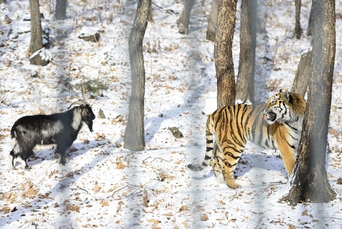 It was a live goat! You see, at this particular zoo, tigers are given live prey twice a week, so they can fulfill their innate hunting instincts. It's a controversial policy, but one that the Far East Russian Safari Park has maintained for a while now.